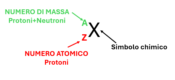 Figura 2 – Rappresentazione schematica del NUMERO ATOMICO (Z) e NUMERO DI MASSA (A)