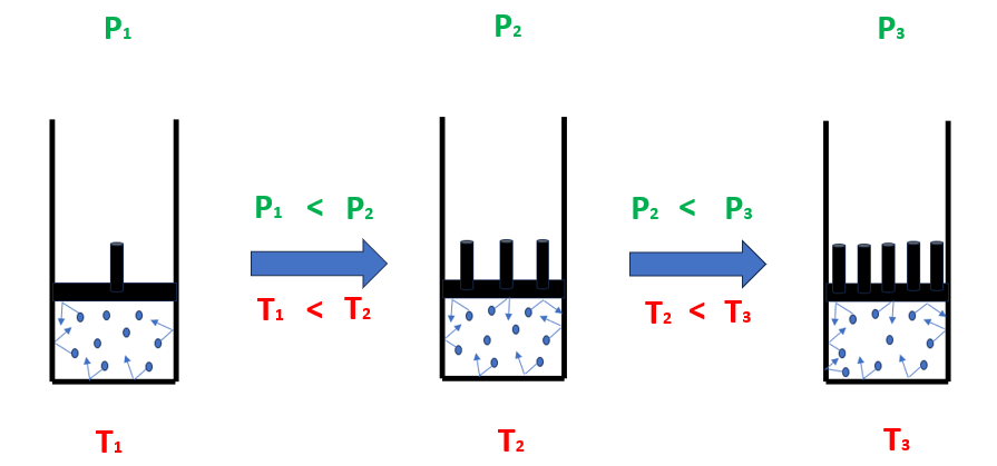 Figura 1 – Aumento della pressione al crescere della temperatura in condizioni isocore