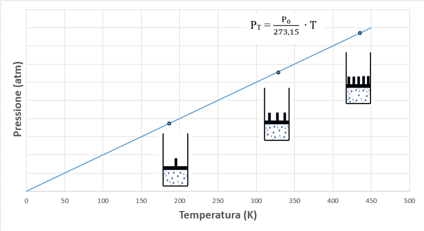 Graficando la pressione in funzione della temperatura espressa in gradi Kelvin, si ottiene una retta la cui pendenza è pari a P0/273,15 dove con P0 s’intende la pressione alla temperatura di 0°C.
