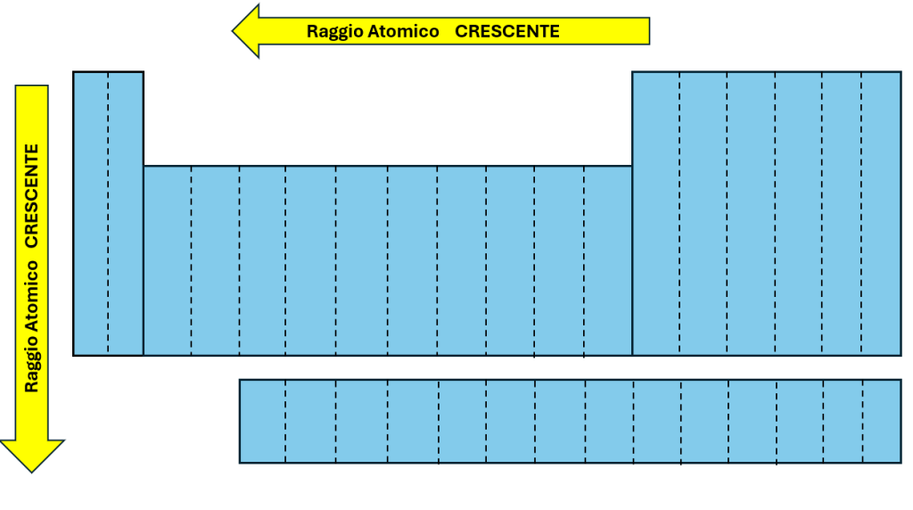 Nella tavola periodica, il raggio atomico cresce dall’alto al basso in un gruppo, e da destra a sinistra in un periodo.