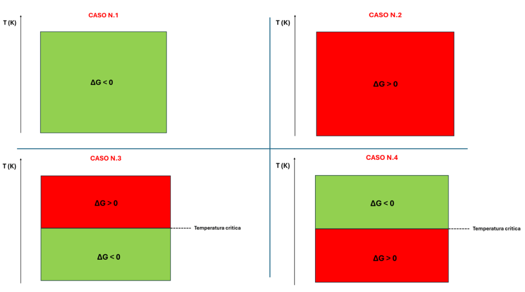 ΔG<0 a valori di temperatura al di sotto di un determinato valore critico.