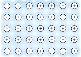 Figura 1 – Rappresentazione schematica di una struttura metallica con le cariche positive circondate da una nube elettronica