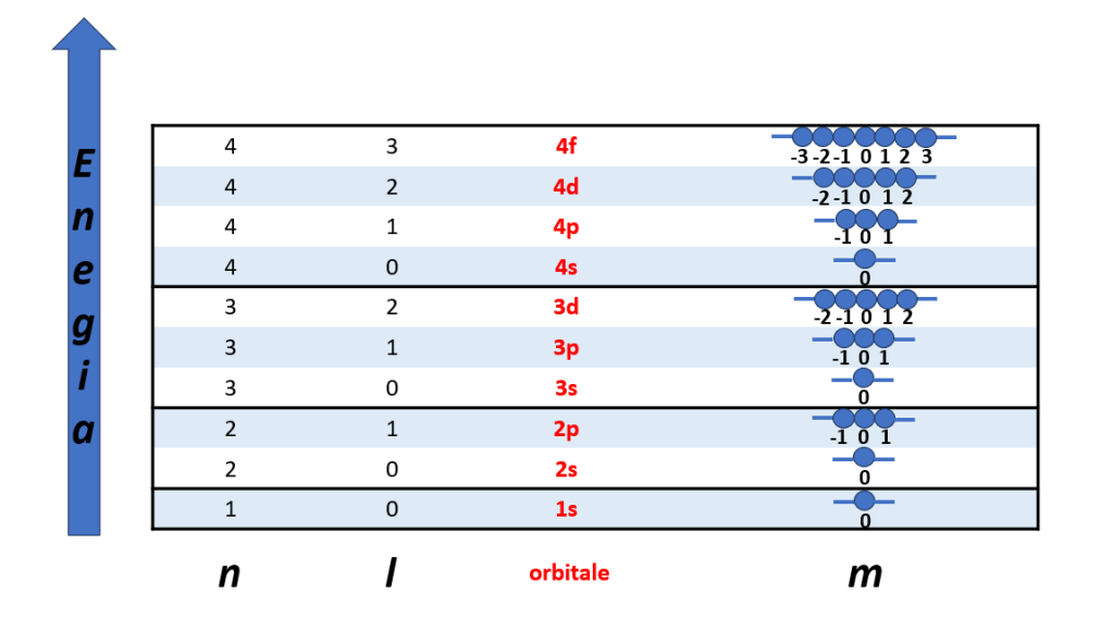 In Tabella 2 sono riassunte tutte le relazioni tra il numero quantico principale n, il numero quantico secondario l, il numero quantico magnetico m e gli orbitali atomici.